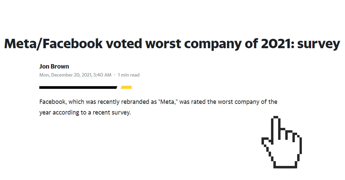 Facebook is voted as the worst company in Yahoo! Finance survey.