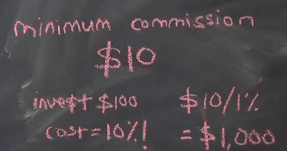 If you take the $10 cost and divide it by the minimum commission of 1%. This gives you a figure of $1,000.