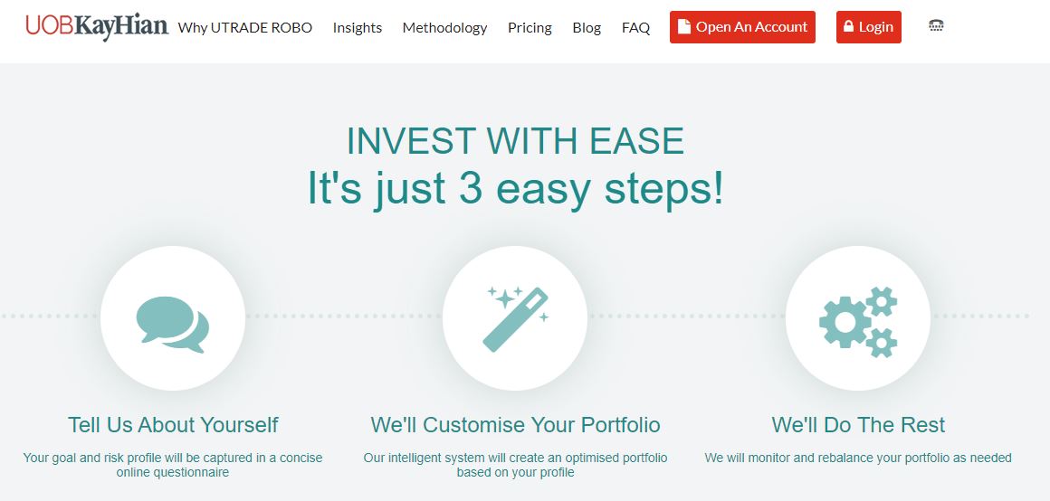 UTrade Robo is a robo advisory service by UOBKayHian, a stock brokerage backed by the UOB Group.